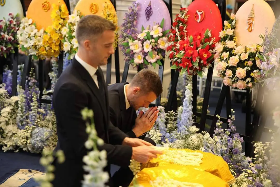 คนไทยซาบซึ้ง นักเตะเลสเตอร์คุกเข่าไหว้ศพเจ้าสัววิชัย ซูมดูพระที่แคสเปอร์ห้อยคอ
