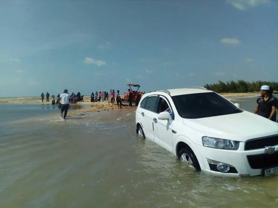 "เก๋งหรู" ติดหล่มทรายนานกว่า 3 ชั่วโมง ลั่น!!! ตอนลงมาน้ำยังไม่ขึ้น