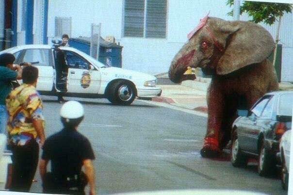 ภาพสะเทือนใจ ปีค.ศ. 1994 ช้างเพศเมียทำร้ายผู้ดูแล หลบหนีระหว่างการแสดง สุดท้ายถูกตร.ยิงตาย