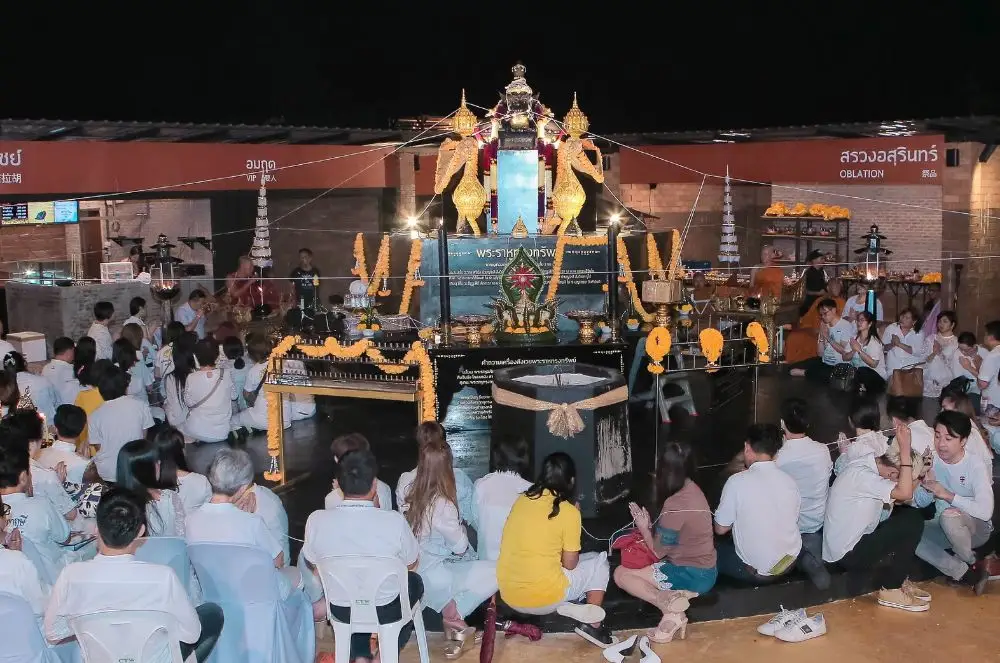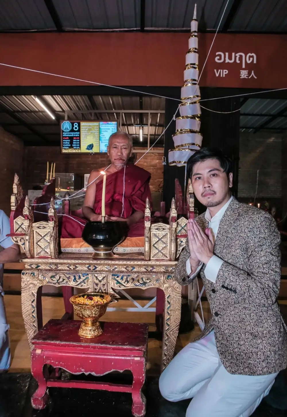 ต้น-สุรยุทธ ไฮโซมาดเซอร์กับคู่หู ชัช-ทรงธรรม ผู้จัดคนเก่งที่ในวันนี้มาในนาม “โค้ชโหรา” จัดเปิดงานพิธีอันเชิญสถิตเทพพระราหู ทรงทรัพย์ ณ ราหูเทวาลัย สี่แยกเกษตร-นวมินทร์ ได้อย่างอลังการงานสร้าง เต็มไปด้วยแขกผู้มีเกียรติจากทุกทั้งวงการเลยทีเดียว อีกทั้งในพิธีอันศักดิ์สิทธิ์พุทธาภิเษกนี้ยังได้มีพิธีนั่งปรกโดยนิมนต์เกจิอาจารย์ ได้แก่ หลวงปู่แป๊ะ วัดสว่างอารมณ์, หลวงพ่อแม้น วัดหน้าต่างนอก, หลวงพ่อนพวรรณ วัดเสนานิมิตร, พระครูสิริสาครธรรม วัดท่ากระบือ และพระครูปลัดอวยพร วัดโพธิ์เงิน พร้อมทั้งมีการสวดมหานาคจากพระสงฆ์สี่รูปจากวัดโพธิ์ท่าเตียน