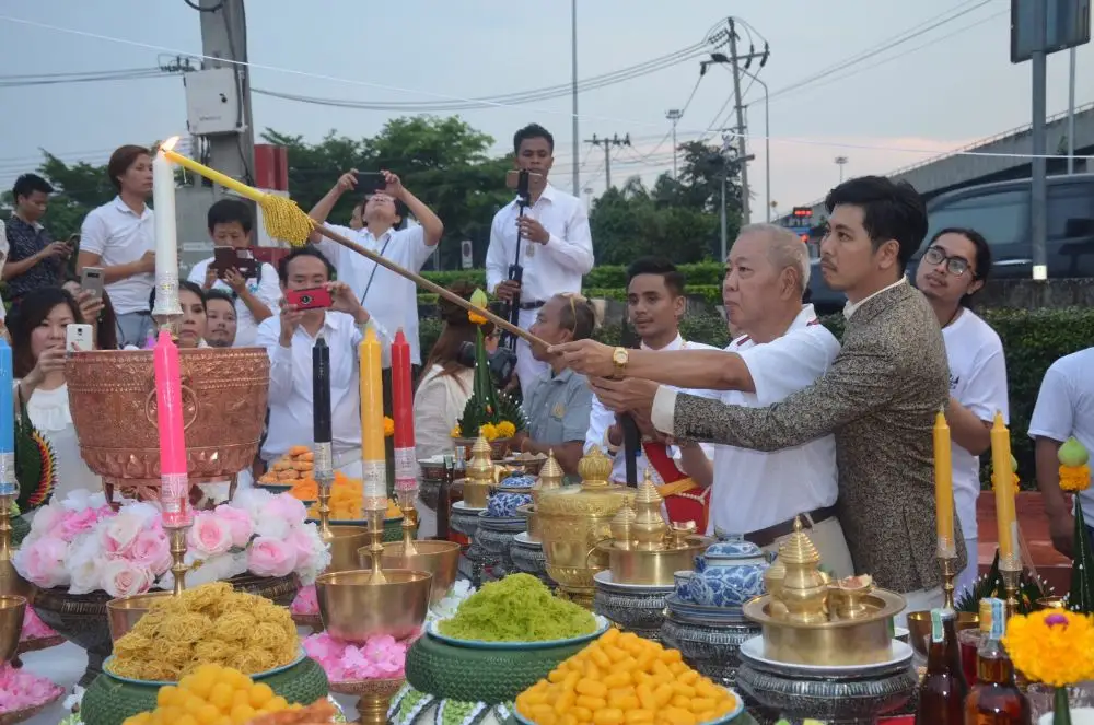 ต้น สุรยุทธ กับคู่หู ชัช ทรงธรรม จัดพิธีอันเชิญเทพสถิตย์ พระราหูทรงทรัพย์ ณ ราหู เทวาลัย สี่แยกเกษตรนวมินทร์