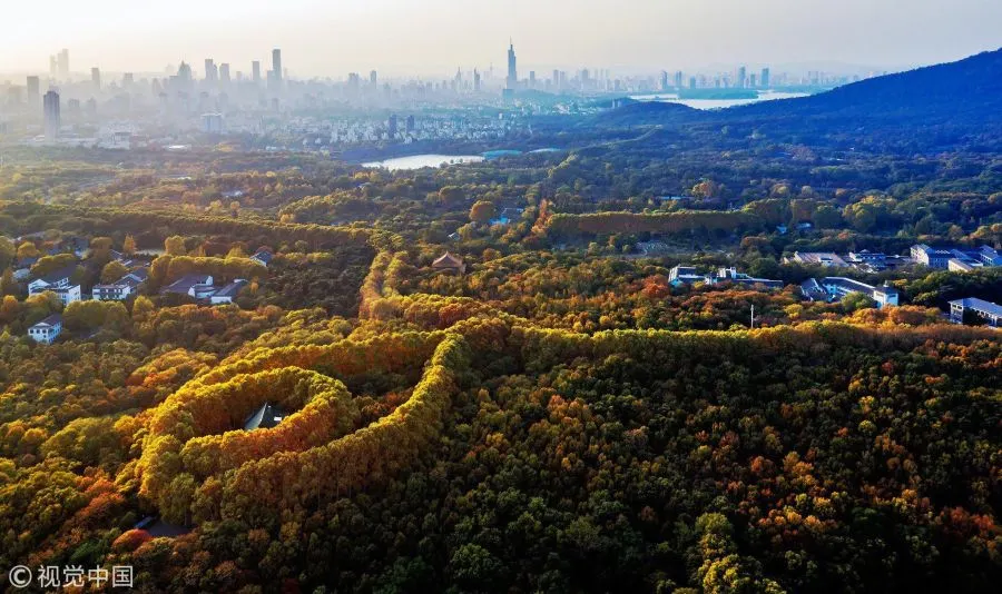 ชวนชมทัศนียภาพธรรมชาติรอบวังเหม่ยหลิง (Meiling Palace) ซึ่งตั้งอยู่กลางแมกไม้ที่ผลัดเปลี่ยนสีสันตามฤดูกาลบนเทือกเขาจื่อจินซานของนครหนานจิง มณฑลเจียงซูทางจีนตะวันออก ... ปฏิเสธไม่ได้ว่าเมื่อมองจากระยะไกล ดูคล้ายสร้อยคอเส้นใหญ่ยักษ์วางพาดอยู่อย่างสวยงามเลยทีเดียว