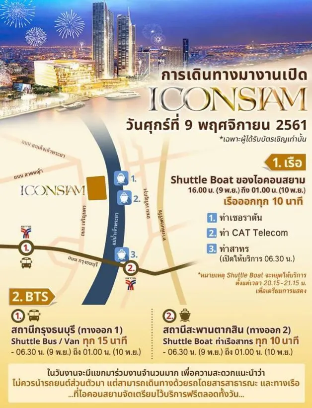 9 พ.ย.2561 พิธีเปิดศูนย์การค้าไอคอนสยาม ถนนเจริญนคร ฝั่งธนบุรี ปิดการจราจรถนนเจริญนครช่วงเช้าถึงเที่ยง