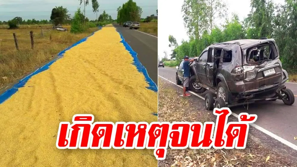 8 พ.ย. ผู้ใช้เฟซบุ๊กที่ชื่อ Tarkoon Simakhan ได้โพสต์ภาพ ข้าวที่ถูกตากไว้บนถนน ทำให้รถยนต์คันหนึ่งที่ขับมา เกิดอุบัติเหตุ ในภาพปรากฏว่า รถยนต์คันดังกล่าวมีสภาพพังยับเยิน เบื้องต้นยังไม่ทราบรายละเอียดว่า คนที่อยู่ภายในเป็นอย่างไรบ้าง