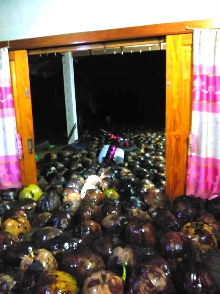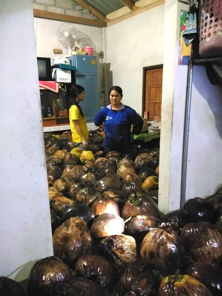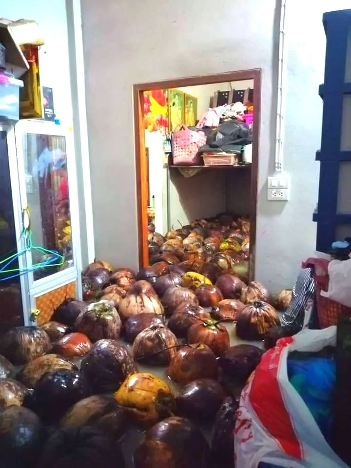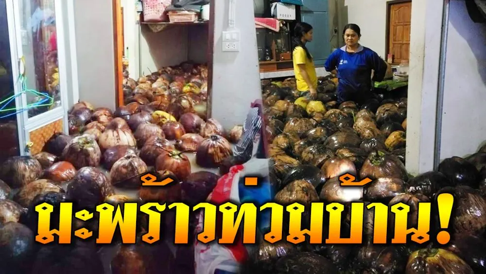น้ำท่วมสวนบางสะพาน หอบเอามะพร้าวเข้าบ้านเต็มพื้นที่ ราวกับแดนสนธยา