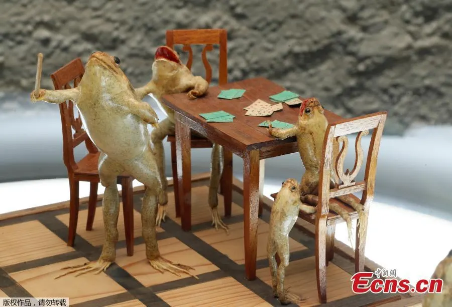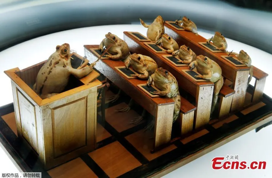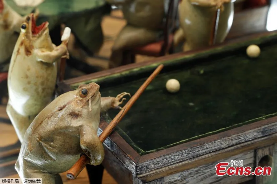 ชมภาพที่ถูกบันทึกไว้เมื่อเร็วๆนี้ ภายใน Estavayer-le-Lac พิพิธภัณฑ์กบสุดแปลกแห่งสวิตเซอร์แลนด์ ที่ถูกสร้างสรรค์ขึ้นโดย François Perrier ชายผู้มีงานอดิเรกคือการจับกบ ซึ่งภายในพิพิธภัณฑ์แห่งนี้ เราจะได้เห็นกบสตัฟฟ์จำนวนกว่า 108 ตัวถูกจัดวางในท่วงท่าเลียนแบบพฤติกรรมชีวิตประจำวันของผู้คนในศตวรรษที่ 19 ตั้งแต่การรับประทานอาหาร การเรียนหนังสือ ไปจนถึงการตีสนุกเกอร์ในยามว่าง