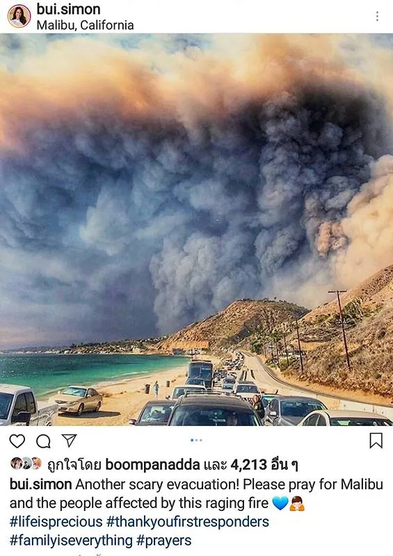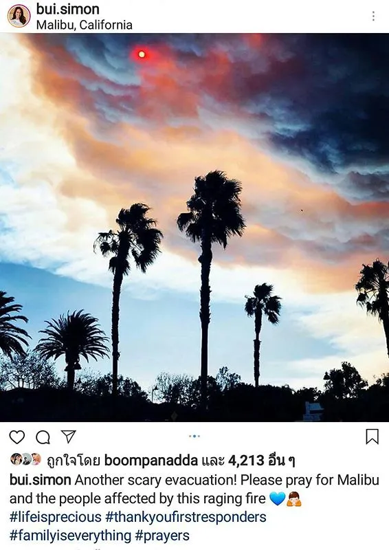 ไฟป่าแคลิฟอร์เนียลามไม่หยุด “ปุ๋ย ภรณ์ทิพย์” พาลูกอพยพอีกครั้ง