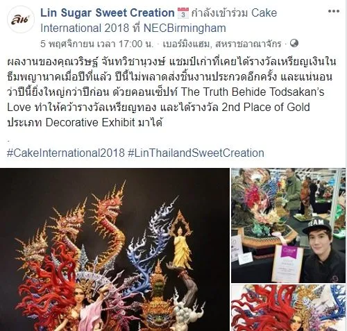 "ผลงานของคุณวริษฐ์ จันทวิชานุวงษ์ แชมป์เก่าที่เคยได้รางวัลเหรียญเงินในธีมพญานาคเมื่อปีที่แล้ว ปีนี้ไม่พลาดส่งชิ้นงานประกวดอีกครั้ง และแน่นอนว่าปีนี้ยิ่งใหญ่กว่าปีก่อน ด้วยคอนเซ็ปท์ The Truth Behide Todsakan’s Love ทำให้คว้ารางวัลเหรียญทอง และได้รางวัล 2nd Place of Gold ประเภท Decorative Exhibit มาได้"
