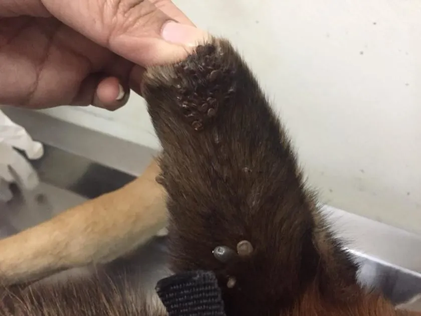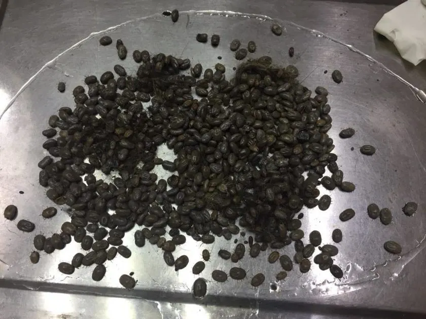 แฟนเพจเฟซบุ๊ก โรงพยาบาลสัตว์สิทธิศักดิ์ จ.ชัยภูมิ โพสต์ภาพและข้อความระบุว่า เรื่องเห็บไว้ใจเรา น้องหมาพันธุ์เยอรมันเชพเพิร์ด (German Shepherd) มาหาคุณหมอด้วยอาการอัณฑะบวมอักเสบ แต่ผลพลอยได้คือเห็บกองนี้ค่ะ (มีทุกอณูรูขุมขน)ป.ล.อันนี้แค่ 20% ยังไม่รวมในถุงมือคุณหมอและในขวดที่ใส่น้ำยากำจัดเห็บ งดดราม่าคุณเจ้าของนะคะ เจ้าของคงมีเหตุผล อาจจะยังเด็กอยู่ไม่มีเวลาดูแล หรือ ไปเรียนแล้วเพิ่งกลับมาบ้าน เคสนี้คุณหมออยากให้เป็นกรณีศึกษาเพื่อจะได้ป้องกันไม่ให้มีเห็บหมัดเหมือนเคสนี้