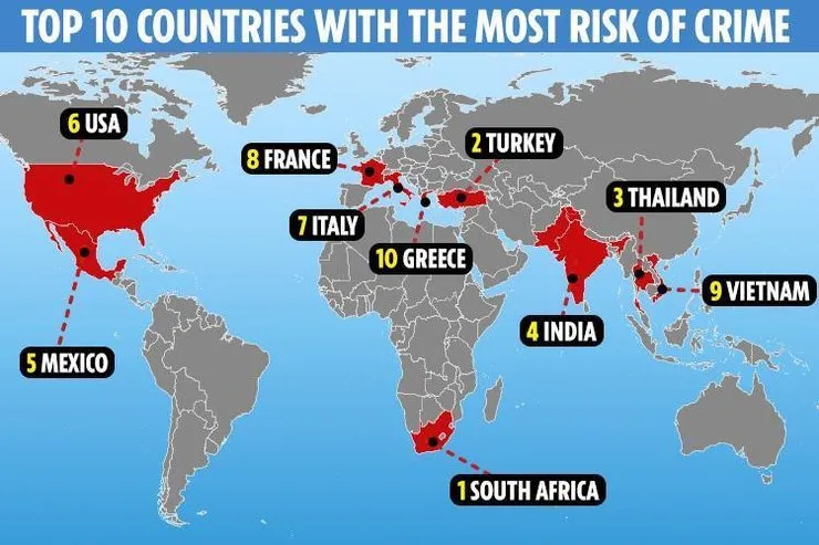 เมื่อวันที่ 10 พฤศจิกายน 2561 เดอะซัน ได้จัด 10 อันดับประเทศที่เสี่ยงอาชญากรรม และอันตรายที่สุดในโลก สำหรับการท่องเที่ยว ประเทศไทยติดโผอยู่ในอันดับที่ 3