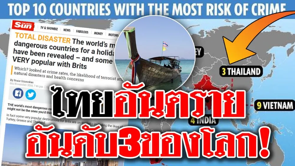 เดอะซันจัดอันดับประเทศที่อันตรายที่สุดในโลก! ชี้ไทยอันดับ 3 นทท.ต่างชาติโต้ปลอดภัยดี!