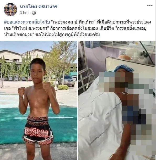 จากข่าวเศร้าวงการมวยไทย กับการเสียชีวิตของ “เพชรมงคล ป.พีณภัทร” นักมวยหนุ่มน้อยดาวรุ่ง หลังจากโดนคู่ต่อสู้ไล่ชกจนหลับกลางอากาศ ร่วงไปน็อคกองกับพื้นเวที ทำให้ศีรษะฟาดพื้นอย่างเเรง เลือดคั่งในสมอง