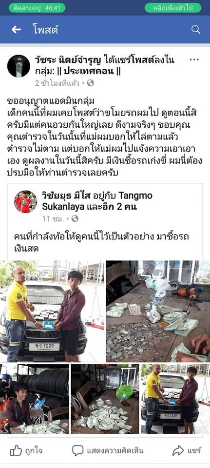 ในขณะที่คนแห่ชื่นชม กลับเกิดคดีพลิก! เมื่อมีผู้ที่เข้ามาแสดงความคิดเห็นอ้างว่าหนุ่มคนนี้เคยขโมยรถของเขาไป ไปแจ้งตำรวจก็ไม่มีอะไรคืบหน้า มาวันนี้หนุ่มคนนี้กับได้ดี ซื้อรถขับ จนอยากปรบมือให้ตำรวจ