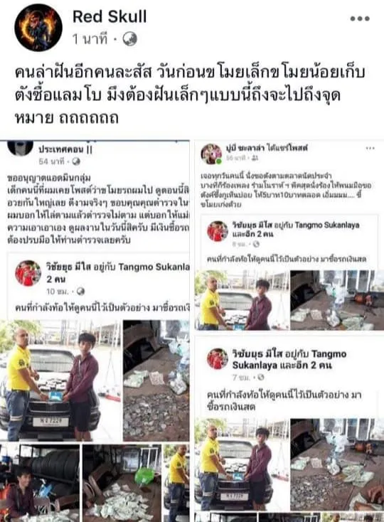 ด้านเพจดังอย่าง Red Skullก็ได้แชร์โพสท์ระบุว่า คนล่าฝันอีกคนแล้ว วันก่อนกขโมยเล็กขโมยน้อยเก็บตงซื้อแลมโบ ต้องฝันเล็กๆแบบนี้ถึงจะไปถึงจุดหมาย ถถถถถถ และมีหลายคอมเม้นท์ที่ออกมาแฉวีรกรรมของหนุ่มคนนี้อีกมามาย ...