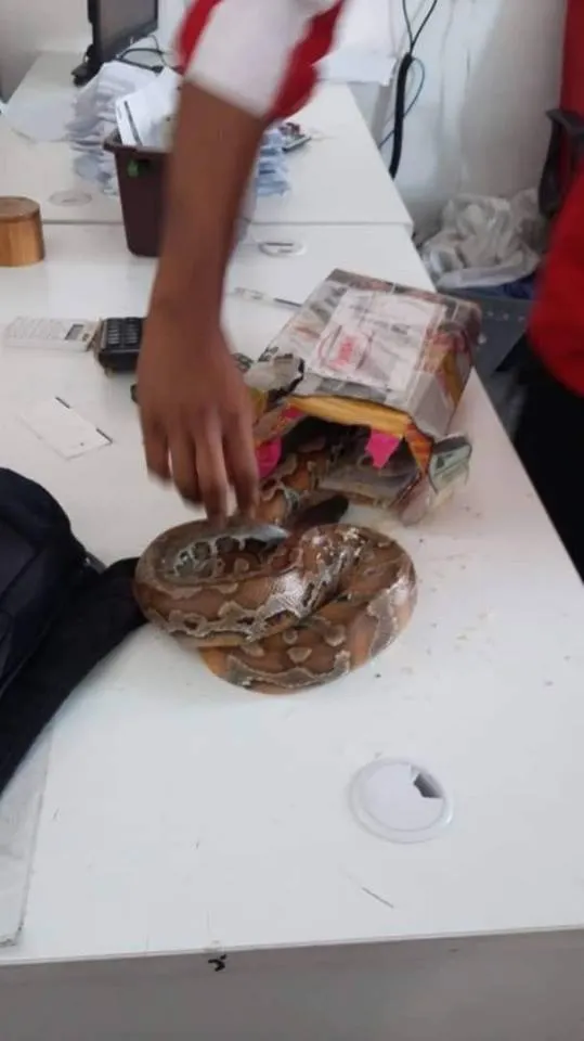 ไปรษณีย์มาเลย์แตกตื่น คนจับงูหลามเป็นๆ ยัดกล่องพัสดุส่ง EMS