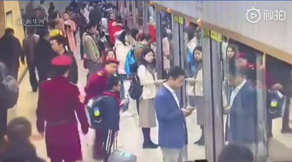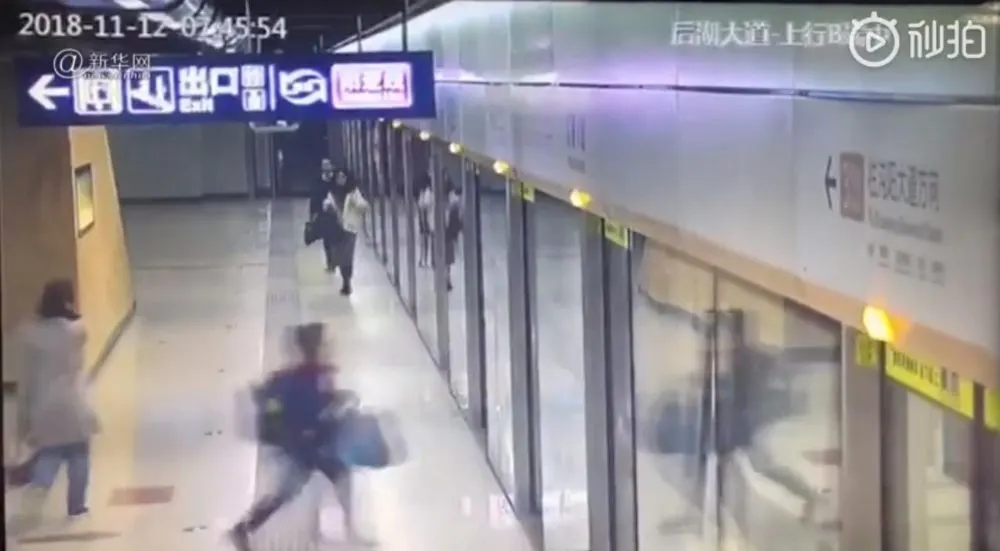 ช่วงเช้าของวันที่ 14 พ.ย. ที่ผ่านมา ที่สถานีรถไฟใต้ดินอู่ฮั่น มณฑลหูเป่ย เด็กชายคนหนึ่งแบกกระเป๋านักเรียนใบโต วิ่งอย่างไม่คิดชีวิตเพื่อพยายามขึ้นรถไฟขบวนที่กำลังจะออกให้ทัน แต่ปรากฏว่าโชคร้าย ประตูปิดลงต่อหน้าต่อตาเขา