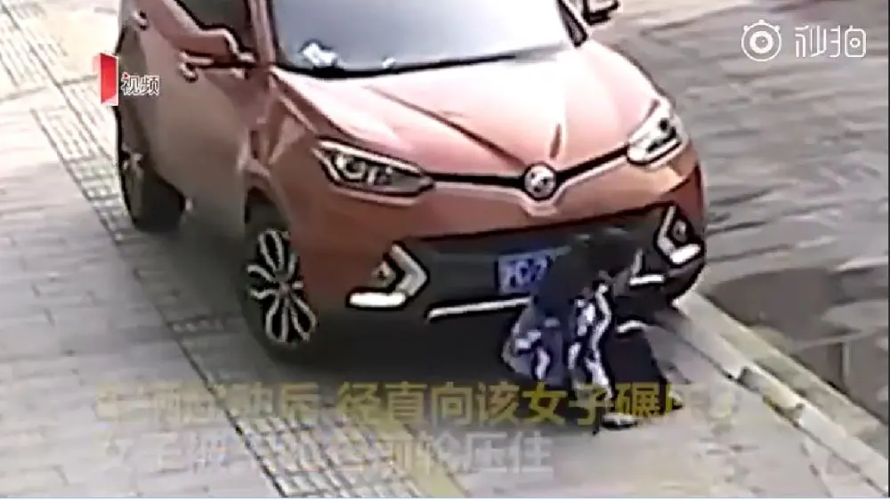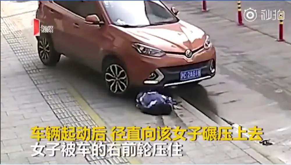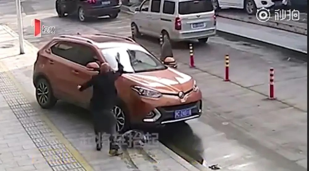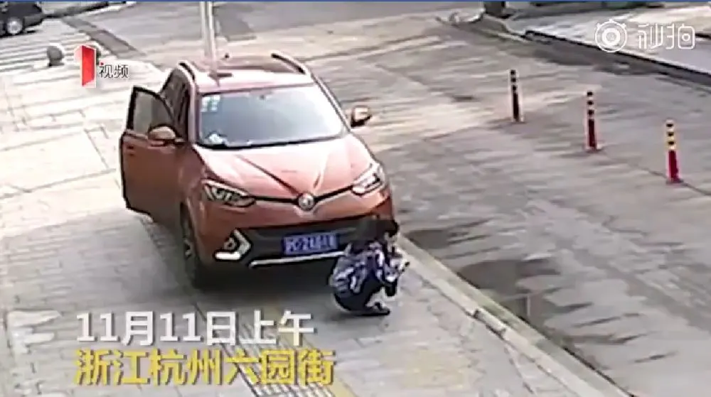 เหตุการณ์เกิดขึ้นริมถนนลิ่วหยวน นครหางโจว มณฑลเจ้อเจียงทางจีนตะวันออก เมื่อวันอาทิตย์ (11 พ.ย.) โดยคลิปวีดีโอเผยภาพหญิงสาววัย 20 ปีเศษ กำลังนั่งยองๆ เล่นโทรศัพท์มือถืออยู่หน้ารถยนต์คันหนึ่งที่จอดอยู่บนทางเท้า