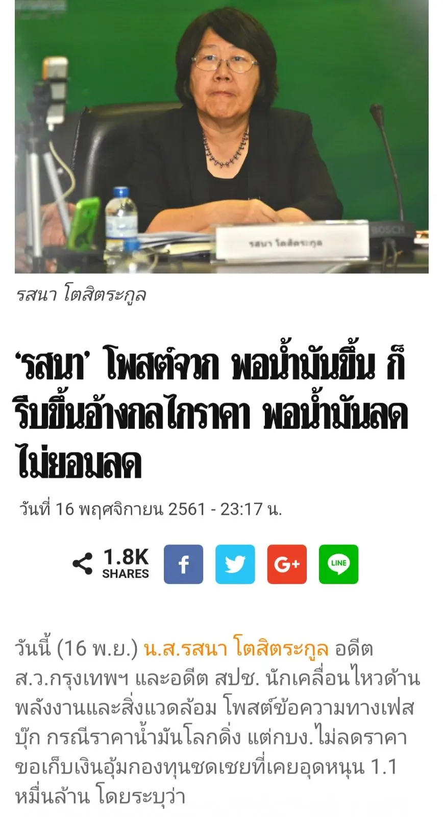 วันละกลอน"รสนาจวกปตท!ขึ้นราคาไวเป็นไปตามตลาด!ลงช้าและแพงเพราะต้องเอาเงินเข้ากองทุน!?