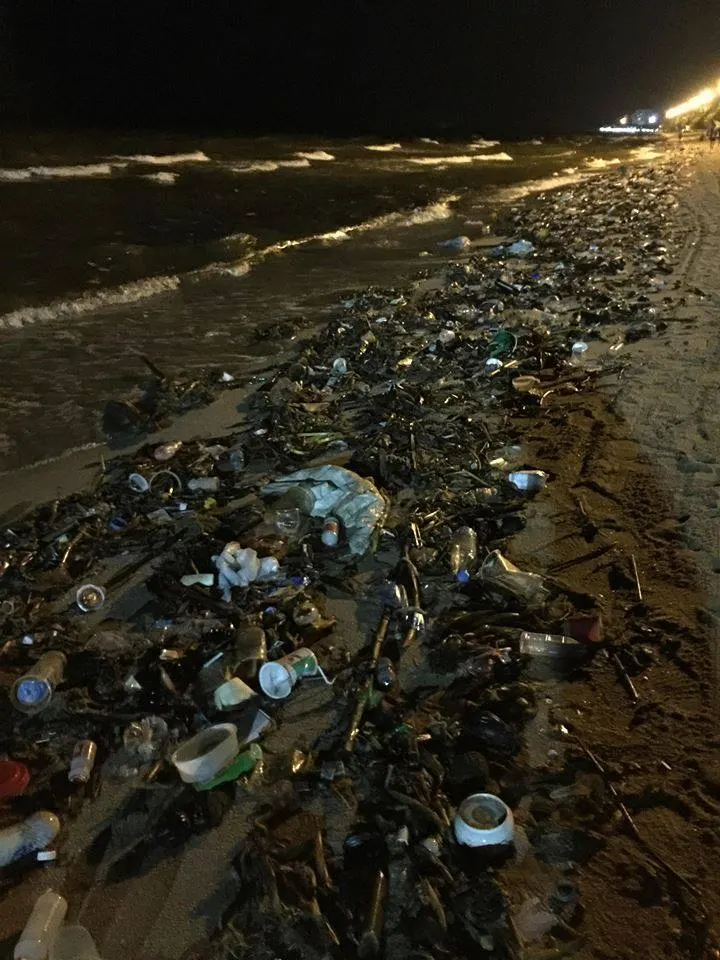 สภาพตอนนี้กับเดือนที่แล้วแตกต่างกันสุดๆ จากหาดสวยๆ น้ำใสๆ ตอนนี้ขยะโดนน้ำทะเลซัดขึ้นมาเต็มหาดเลย