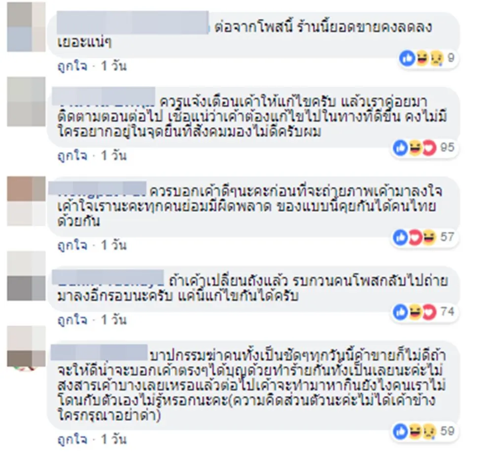 ทั้งนี้ได้มีชาวเน็ตเข้ามาคอมเม้นต์ถึงเรื่องราวดังกล่าวอย่างมากมาย พร้อมทั้งบอกว่า พ่อค้าน่าจะคำนึงถึงความสะอาดบ้าง เพื่อความถูกสุขอนามัยและเพื่อความปลอดภัยของสุขภาพลูกค้า นอกจากนี้ยังมีชาวเน็ตบางส่วนที่บอกว่า ตนก็เคยซื้อผลจากรถคันนี้อยู่ แต่พอเห็นภาพนี้แล้วก็คงจะต้องเปลี่ยนใจในการซื้อครั้งต่อไป