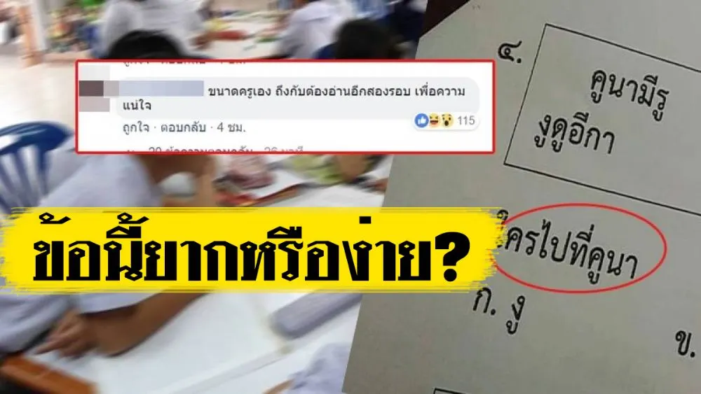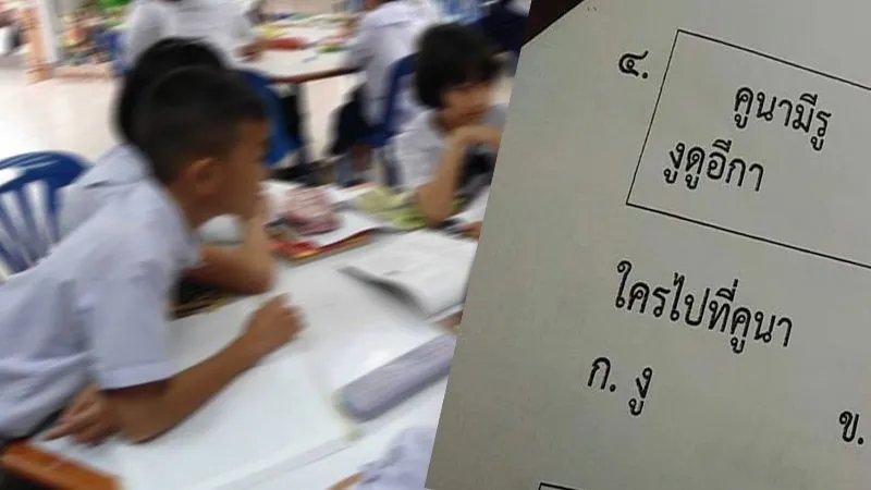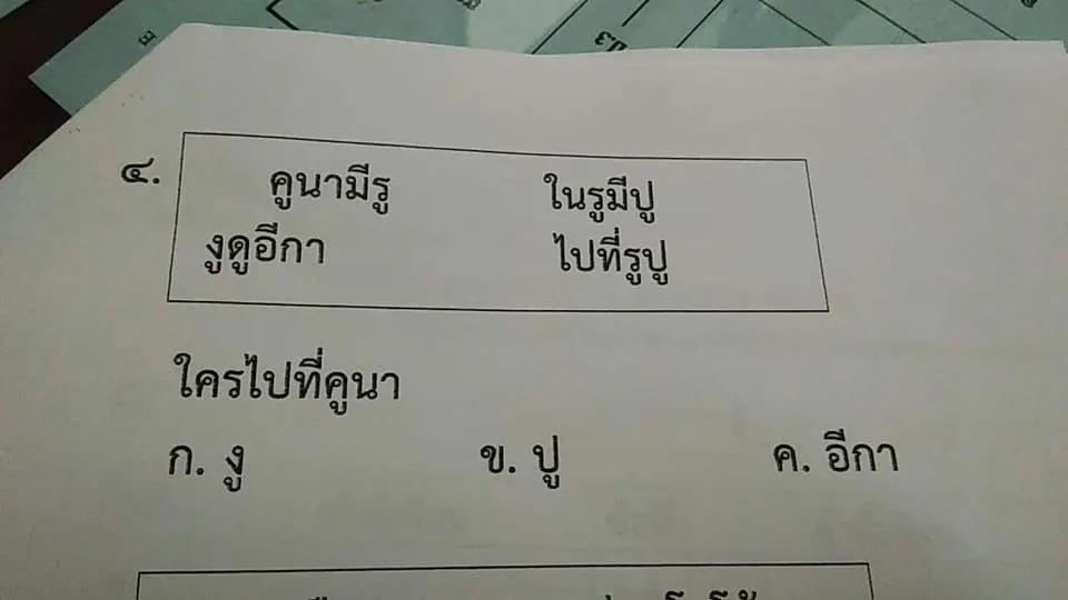 ยากหรือง่าย? ข้อสอบป.1 ถามว่า คูนามีรู ในรูมีปู งูดูอีกา ไปที่รูปู "ใครไปที่คูนา"