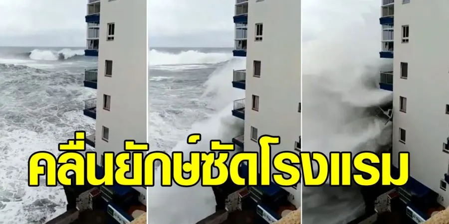 คลิประทึก คลื่นยักษ์สูงกว่า 10 เมตร ซัดถล่มโรงแรมพังยับ