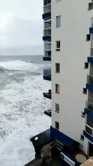 คลื่นยักษ์ที่มีความสูงกว่า 10 เมตร กระหน่ำซัดโรงแรมแห่งหนึ่ง ซึ่งคลื่นมีความสูงไปถึงตึกชั้น 3 ความรุนแรงของคลื่นส่งผลให้ระเบียงโรงแรมพังลงในพริบตา แต่โชคดีที่ไม่มีผู้ได้รับบาดเจ็บหรือเสียชีวิตจากเหตุการณ์ดังกล่าว