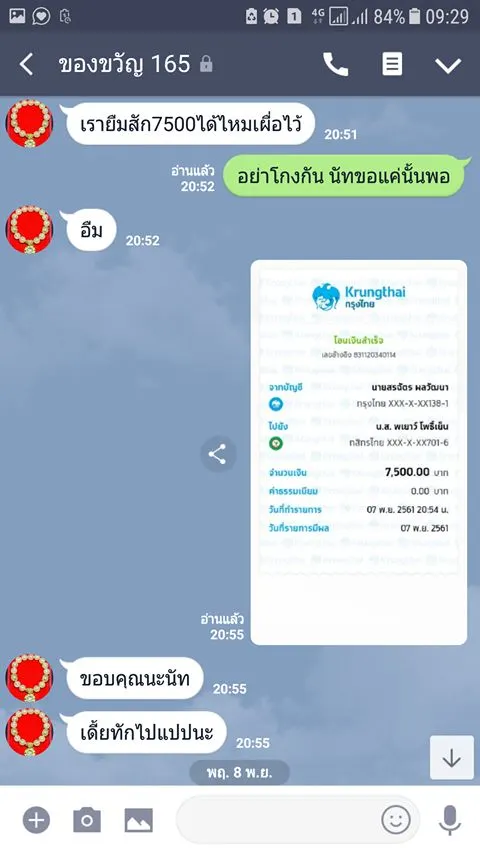 โดยทั้งหมดตนได้โอนไปประมาณร่วมแสน และวันที่ 9 พ.ย. ตนได้ทักไปถามเรื่องเงิน สุดท้ายลบไลน์ทิ้งหนีไปหายไปเลย