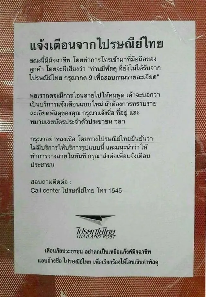 ไปรษณีย์ไทยเตือนภัยอีกแล้ว!!!