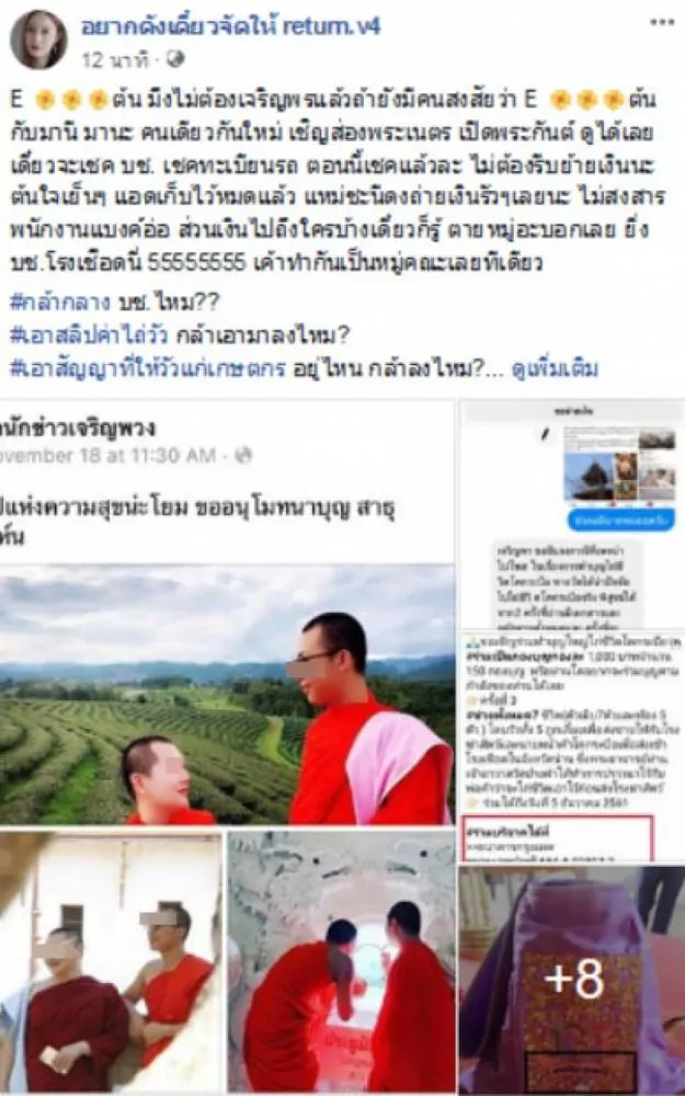 เรียกได้ว่าเป็นเรื่องที่มีคนให้ความสรใจกันเป็นจำนวนมากสำหรับในเรื่องพระที่ใช้การไถ่ชีวิตโคกระบือบังหน้า แต่ชีวิตกลับอยู่สุขสบายเหมือนไม่ใช่พระ โดยเพจอยากดังเดี๋ยวจัดให้ return.v4 ออกมาแชร์ภาพพระสงฆ์คู่หนึ่ง พร้อมกับข้อมูลแน่นปึก ว่าใช้ผ้าเหลืองหากิน โดยให้ข้อมูลว่าพระรูปดังกล่าว มีเฟซบุ๊กหลายเฟซ และมีอยู่ 1 เฟซที่คอยลงขอรับเงินบริจาคไถ่ชีวิตโคกระบือ แต่เฟซอื่นๆนั้นมีไว้อวดความรวย โดยมีหลักฐานทั้งภาพเที่ยวสุดสวีท โชว์เงิน โชว์โทรศัพท์มือถือรุ่นใหม่ โดยทางเพจระบุข้อความแนบว่า