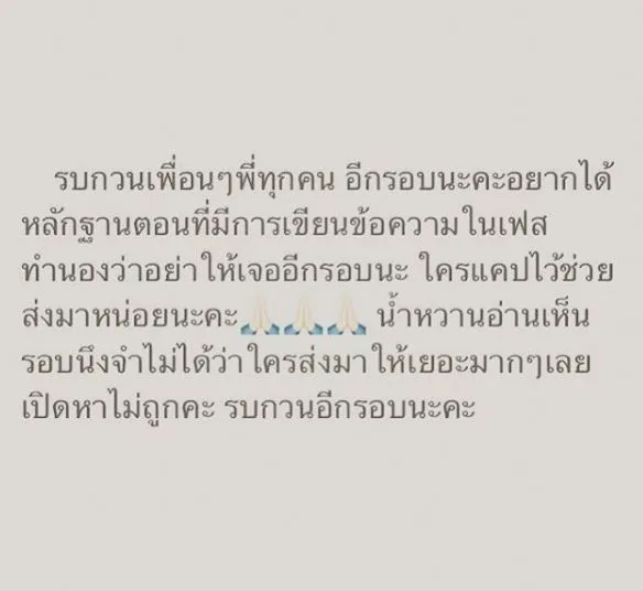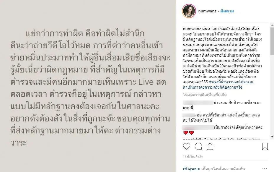 ต่อมาวันที่ 20 พ.ย. 2561 ไฮโซน้ำหวานได้โพสต์อีกครั้งตามหาหลักฐานตอนถูกคู่กรณีข่มขู่เพื่อใช้เป็นหลักฐานยื่นฟ้องร้อง