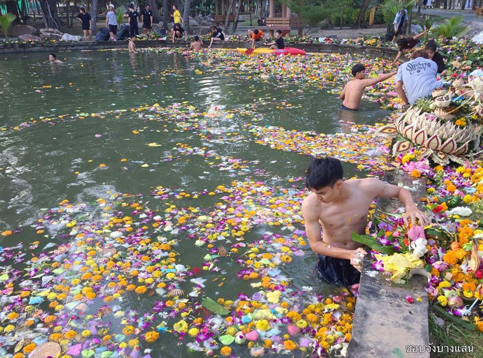 ไม่ให้สิ่งแวดล้อมบอบช้ำ นศ. "มหาวิทยาลัยบูรพา" ทำความสะอาดสระหลังลอยกระทง
