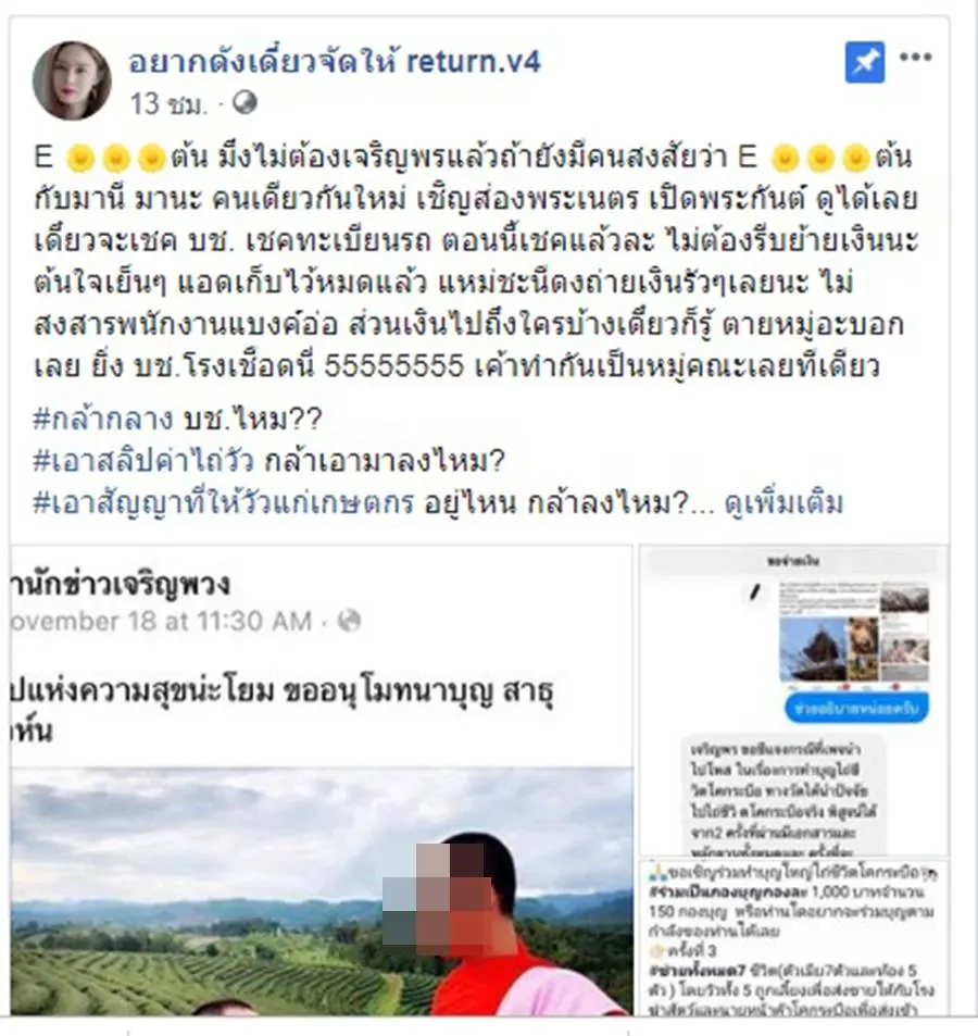 กรณีโลกออนไลน์มีการแชร์โพสต์ จากเพจ อยากดังเดี๋ยวจัดให้ return.v4 ออกมาแฉพฤติกรรมของพระ ซึ่งเป็นถึงระดับเจ้าอาวาสวัดดังในเขต อ.เมืองน่าน ในลักษณะใช้ผ้าเหลืองหากินโดยการเปิดรับบริจาค ทำบุญด้วยการไถ่ชีวิตโคกระบือผ่านเพจชื่อวัด ขณะที่ใช้อีกเฟซบุ๊กว่า มานี มานะ อวดความร่ำรวย โชว์ภาพเที่ยว กิน นอนหรูหรา