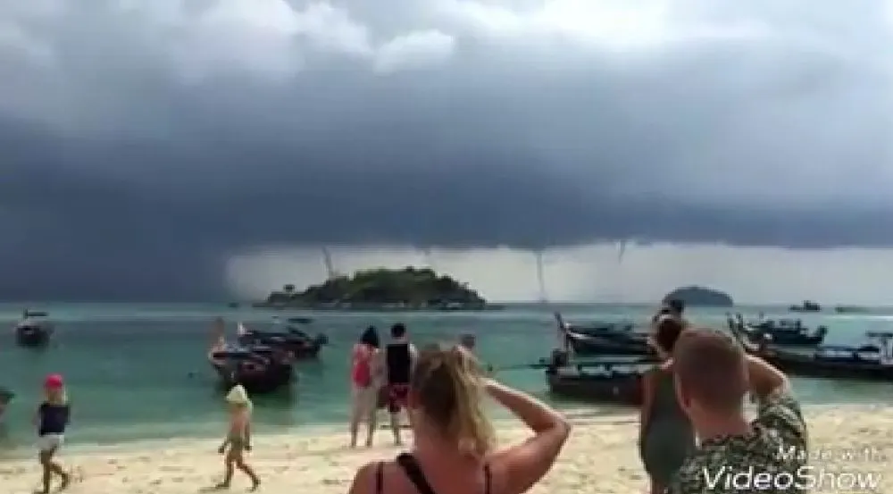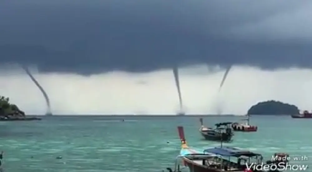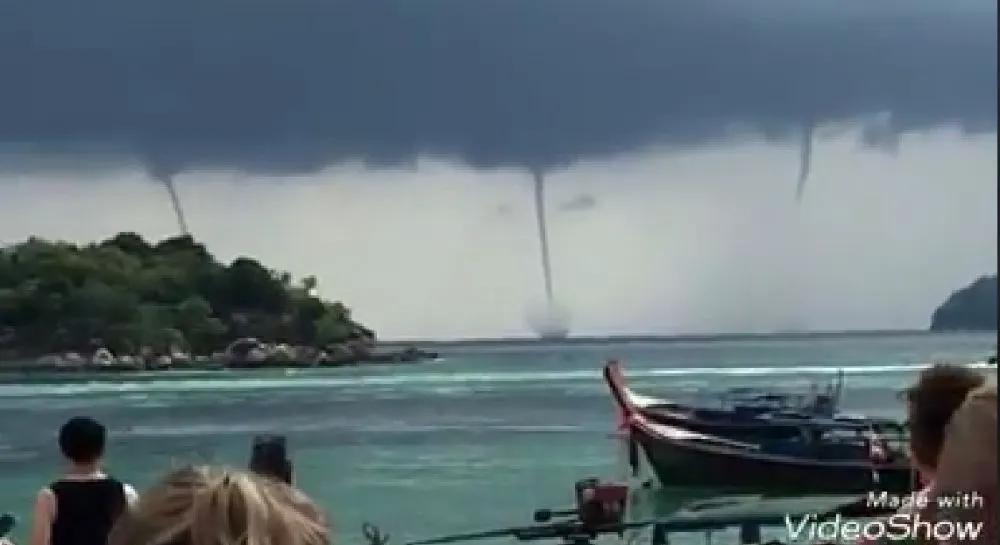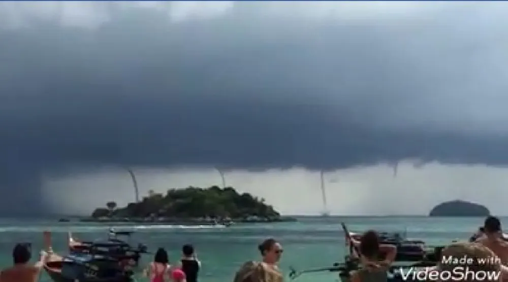 สะพรึง!! พายุงวงช้างหลายลูก กลางทะเลเกาะหลีเป๊ะ จ.สตูล