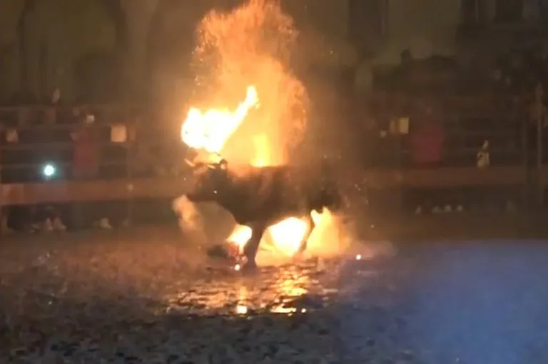 กลุ่มนักเคลื่อนไหวปกป้องสิทธิสัตว์ เรียกร้องให้มีการยุติเทศกาลกระทิงไฟ อ้างทารุณกรรมสัตว์อย่างรุนแรง!!