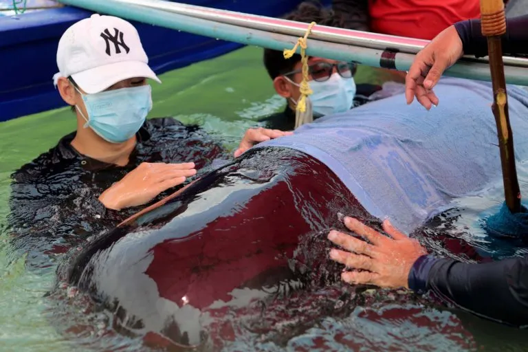 แต่สิ่งที่สร้างความตกใจให้กับเจ้าหน้าที่กู้ชีพเป็นอย่างมากก็คือ ซากเน่าเปื่อยของปลาวาฬที่ภายในกระเพาะอาหารของมันนั้นเต็มไปด้วยเศษขยะ ถ้วยดื่มพลาสติกจำนวน 115 แผ่น รองเท้าแตะ 2 คู่ และชิ้นพลาสติกอื่น ๆ อีกกว่า 1,000 ชิ้น