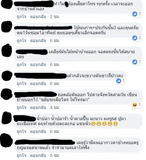 ทั้งนี้ได้มีชาวเน็ตต่างเข้ามาเม้นท์แสดงความคิดเห็นเรื่องดังกล่าว โดยต่างวิพากษ์วิจารณ์การกระทำดังกล่าว พร้อมระบุว่า ลองเอากระถางต้นไม้หน้าบ้านตัวเองออก ก็น่าจะจอดได้แล้ว ทำไมต้องจอดหน้าบ้านคนอื่น ไม่มีสามัญสำนึก แต่อย่างไรก็ตามก็ไม่ควรที่จะมาจอดรถขวางทางหน้าบ้านผู้อื่น อีกทั้งยังผิดกฏหมาย ตามกฎหมาย มาตรา 397 ได้กล่าวไว้ว่า "ผู้ใดกระทำด้วยประการใดๆต่อผู้อื่นอันเป็นการรังแก ข่มเหง คุกคาม หรือกระทำให้ได้รับความอับอายหรือเดือดร้อนรำคาญ ต้องระวางโทษปรับไม่เกิน 5 พันบาท"