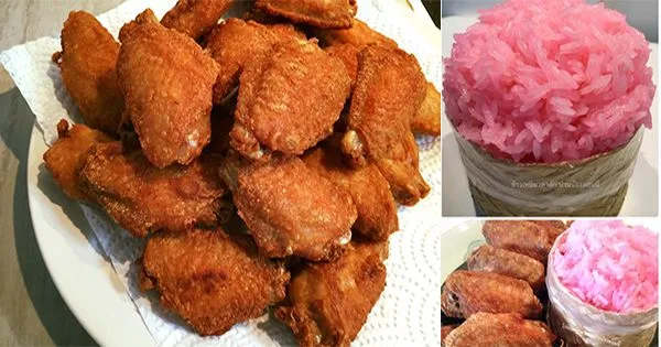ทำมาหากิน "ปีกกลางไก่ทอด "ข้าวเหนียว สีชมพูสวยฟรุ้งฟริ้ง ..ลองทำกันดูมั้ย