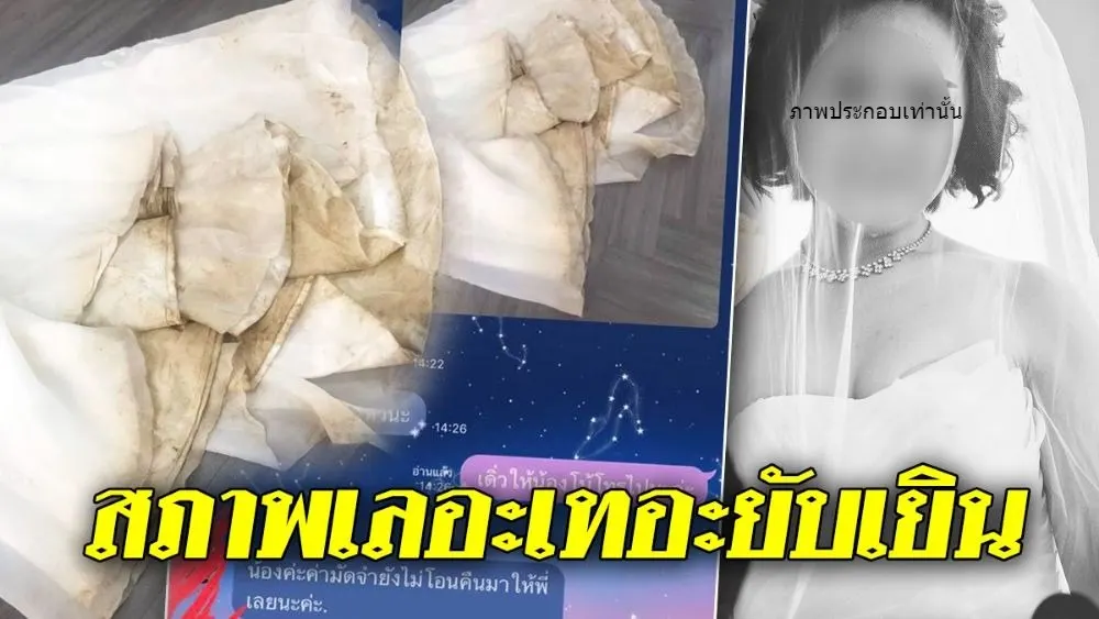 ร้านเวดดิ้งน้ำตาตก ลูกค้าส่งคืนชุดเจ้าสาวในสภาพยับเยิน เสียหาย 5,000 ลูกค้าบอก "เอาไป 1,000 เดียวพอ"