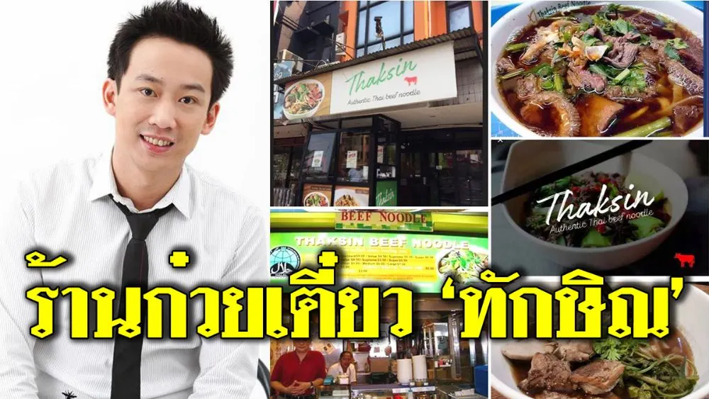 โอ๊ค พานทองแท้ ลูกชาย ทักษิณ ชินวัตร อดีตนายกรัฐมนตรี สุดปลื้ม! คนสิงคโปร์นำ ชื่อ“ทักษิณ” ไปเปิดร้านก๋วยเตี๋ยว สาขา ที่อิโดนีเซีย โดยได้เปิดร้าน ก๋วยเตี๋ยว 'ทักษิณ' ที่สิงคโปร์มากว่าสิบสาขาแล้ว ด้านทักษิณ ชอบใจ เตรียมหาเวลาไปบินอุดหนุน ชิมก๋วยเตี๋ยว เพราะชอบก๋วยเตี๋ยวเนื้อมาก เหน็บ คสช.ประเทศเสรีถ่ายรูปได้ไม่ต้องกลัวใครตามเอาผิด..
