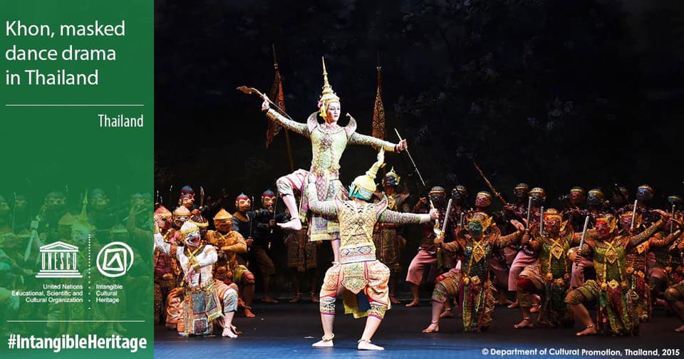 คณะกรรมการ ICH - UNESCO ณ ประเทศมอรีเชียส อนุมัติให้ไทยขึ้นทะเบียนโขนได้สำเร็จ โดยโขนไทยถูกขึ้นทะเบียนเป็นมรดกภูมิปัญญาทางวัฒนธรรม หรือ Intangible Cultural Heritage 19.35 น. เวลาประเทศไทย29 พฤศจิกายน 2561