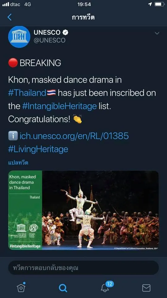 วินาทีที่คณะองค์การ UNESCO ประกาศให้ #โขนไทย ขึ้นเป็นมรดกภูมิปัญญาทางวัฒนธรรม หรือ Intangible Cultural Heritage (ICH)