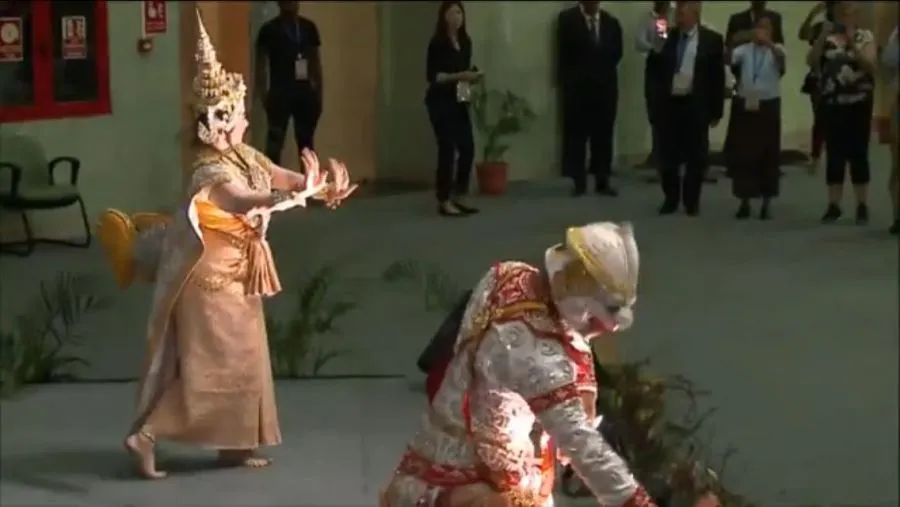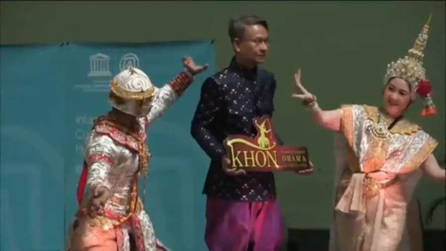 หลังจากที่คณะ ICH UNESCO ประกาศขึ้นทะเบียนโขนเป็นมรดกภูมิปัญญาทางวัฒนธรรม ทันใดนั้น... ก็มีเสียงดนตรีโขน + หนุมาน ตีลังกาออกมาแสดงโขนต่อหน้าคณะกรรมการ UNESCO และตัวแทนแต่ละประเทศทั่วโลก