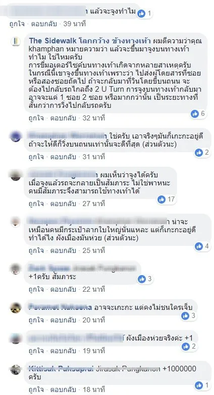 ด้านชาวเน็ตเข้ามาคอมเม้นต์ทั้งชื่นชม และไม่เห็นด้วย แม้จะจูงรถจยย.ก็ตาม แต่มันเป็นเส้นทางบนฟุตปาธ