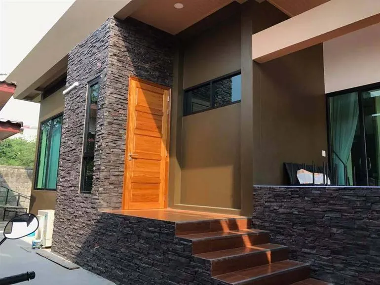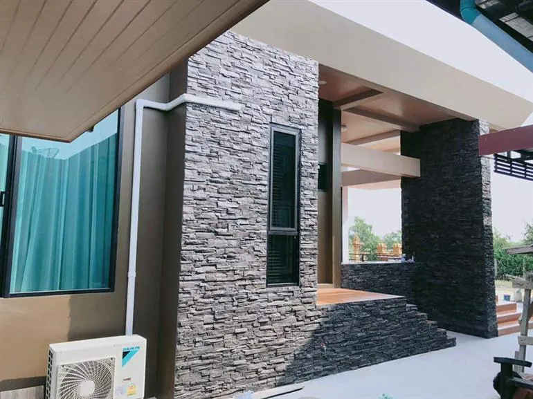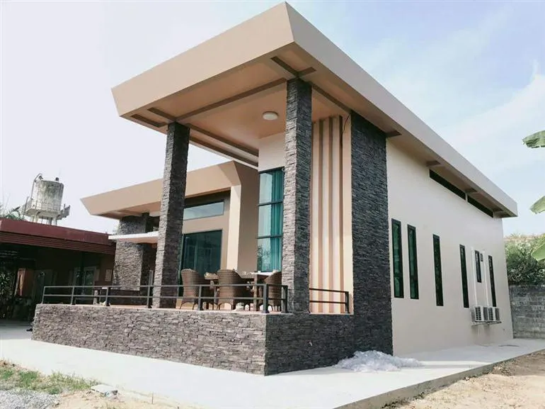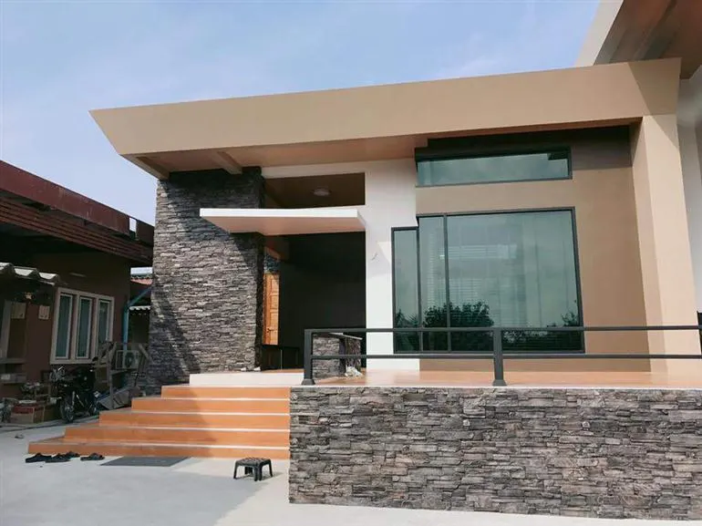 แบบบ้านสวย แนวโมเดิร์นชั้นเดียว ตกแต่งด้วยอิฐภายนอกโดดเด่นจริงๆ
