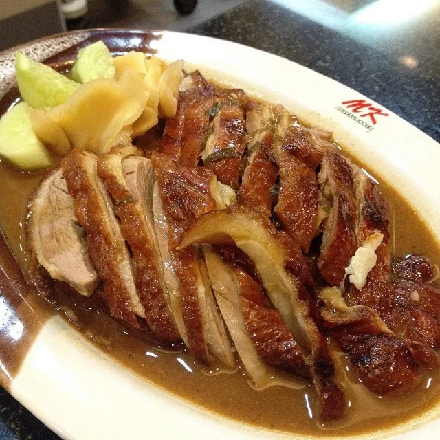แล้วเอาซอสที่รองได้ราดหน้าเป็ดลงไปให้ซอสซึมลงไปในเนื้อเป็ด จะทำให้เนื้อเป็ดไม่เเห้ง