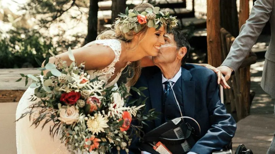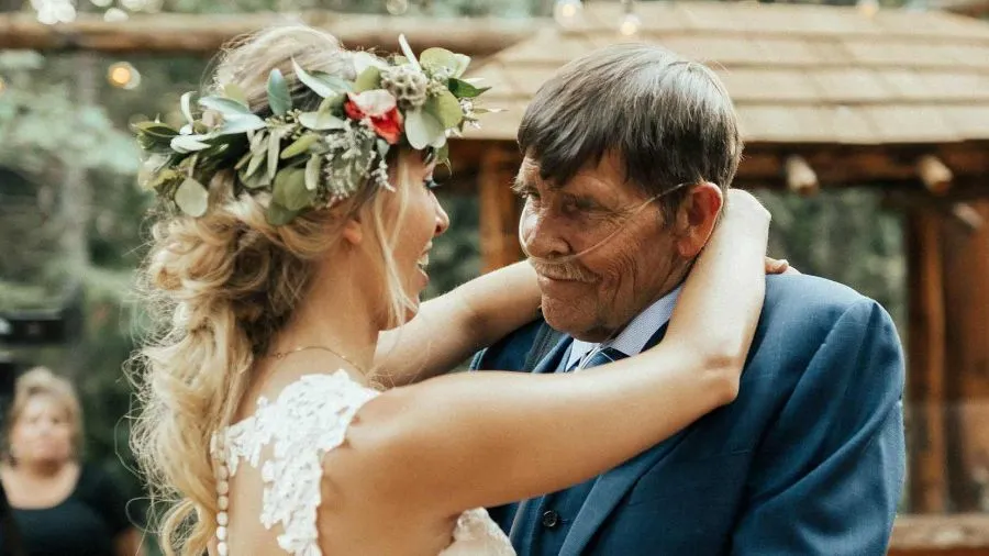 ชวนชมภาพน่าประทับใจเรียกน้ำตาแห่งความซาบซึ้ง หญิงสาวสวมชุดวิวาห์สีขาวสวยงามเต้นรำกับชายชราผมสีดอกเลา ผู้เป็นพ่อที่ป่วยหนักระยะสุดท้ายในวันเริ่มต้นชีวิตคู่ของเธอ