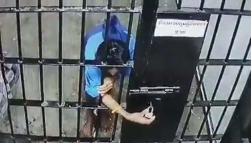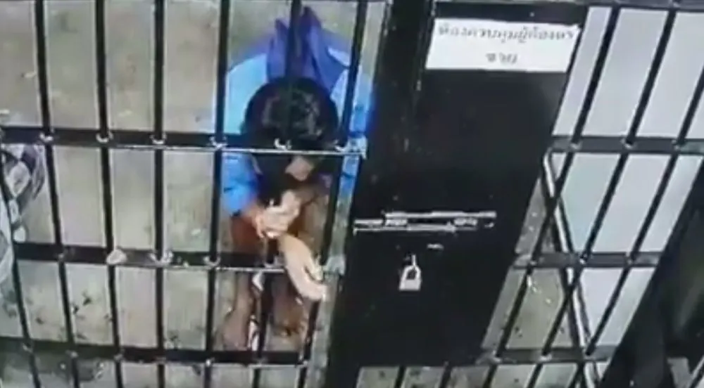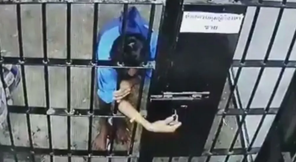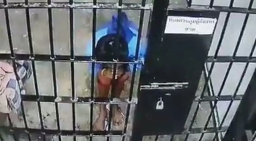 ภาพเหตุการณ์เมื่อคืนวันที่ 27พ.ย.61ขณะผู้ต้องหาคดีข่มขืนด.ญ.13ปี กำลังพยายามใช้ไสยศาสตร์ มนต์ดำ สะเดาะกุญแจห้องขัง ให้ได้ บน สภ.เฉลิมพระเกียรติ จ.บุรีรัมย์ โดยกล้องวงจรปิด บนโรงพักจับภาพไว้ชัดเจน