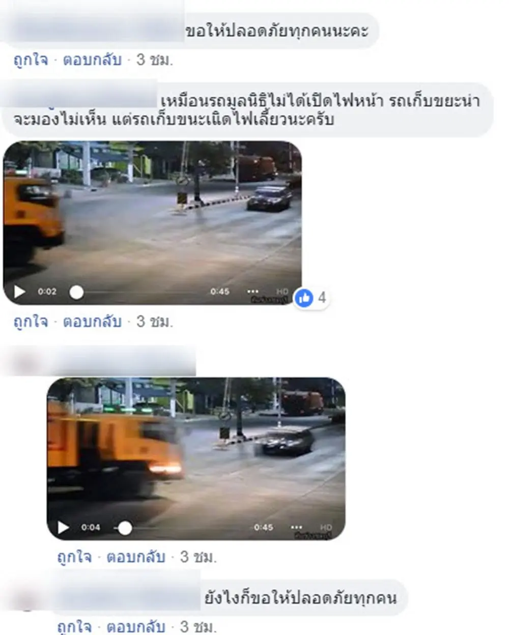 หลังจากนั้นก็กลายเป็นข้อถกเถียงกันอย่างต่อเนื่อง เพราะชาวโซเชียลได้เข้ามาเเสดงความเห็นบ้างก็ว่า ทำไมรถกู้ภัยถึงไม่เปิดไฟหน้า ไม่ชะลอความเร็ว ซึ่งอาจเป็นสาเหตุที่ทำให้ รถเก็บขยะมองไม่เห็นก็เป็นได้
