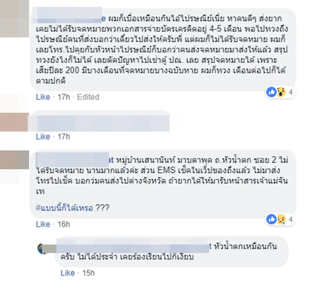 หลังจากเกิดกระแสกันไปเกี่ยวกับกรณีบุรุษไปรษณีย์ทิ้งจดหมายของผู้ส่ง ล่าสุดมีผู้ใช้เฟซบุ๊ก "ตรัยรัตน์ อ่อนสมทรง" ได้โพสต์รูปภาพจดหมายมากมายถูกทิ้งอยู่เป็นกองใหญ่